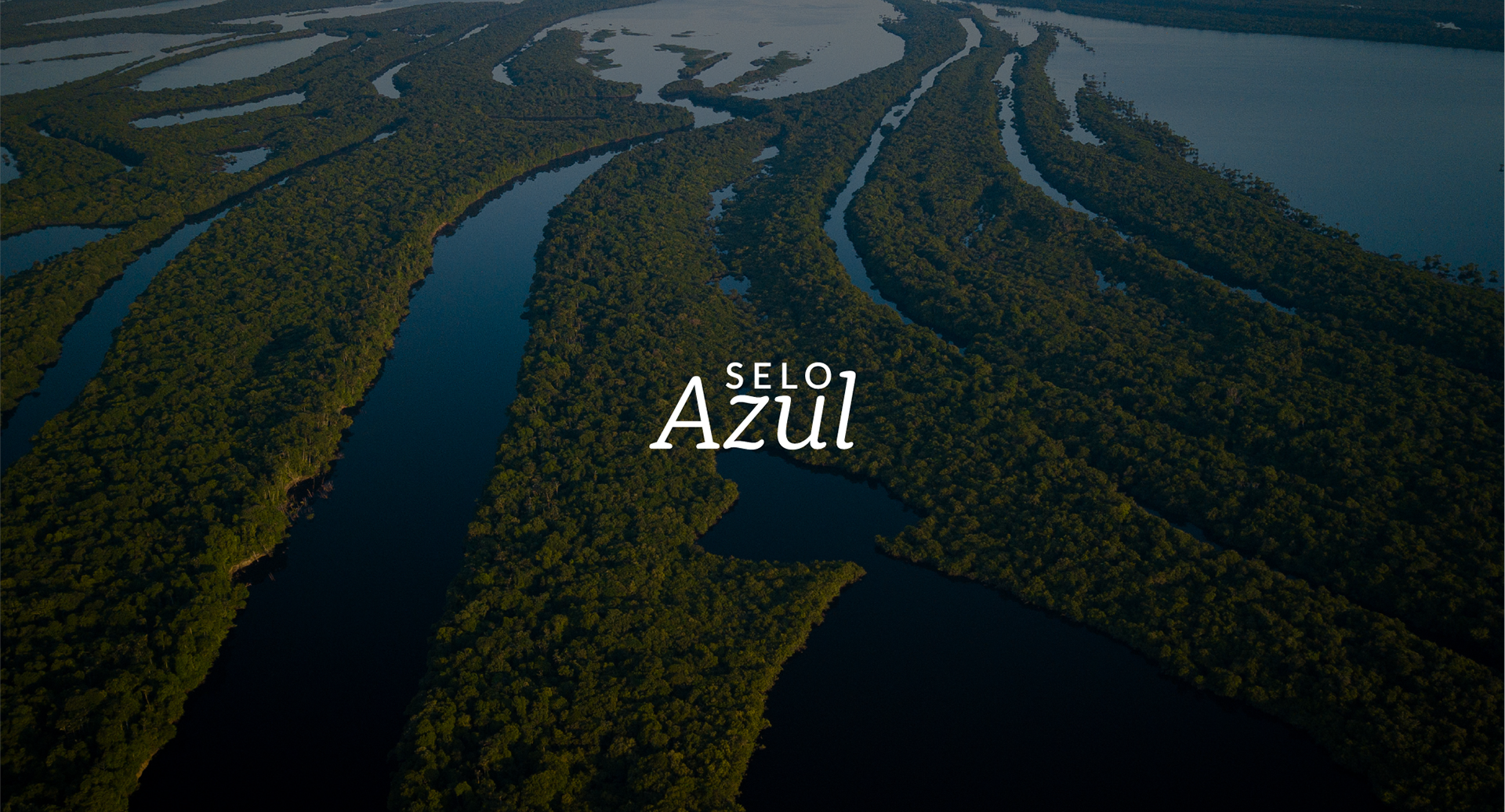O verde representa á natureza vegetal e o amarelo de tom dourado traz o elemento de celebração do Selo Azul.
